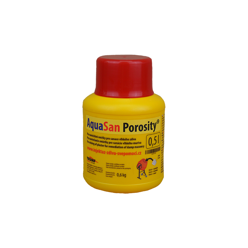AquaSan Porosity® je přípravek na výrobu značně paropropustné sanační omítky pro sanaci vlhkého zdiva. Usnadňuje nahazování omítky.