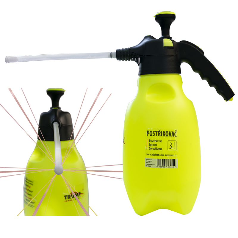 Postřikovač o obsahu 3 l, na který se namontuje nástavec (PET trubice s tryskou a koncovkou).